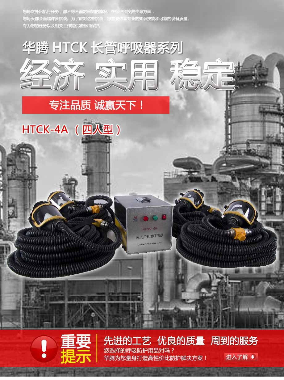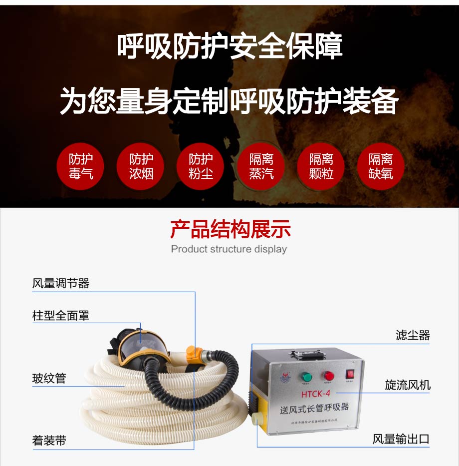 | 產(chǎn)品特點: | 斷電不斷供氣,內(nèi)置蓄電池可保停電后持續(xù)工作3小時(適用于HTCK-4BX型);斷電報警,停電即刻高分貝報警聲,提醒佩戴者需立即撤離工作現(xiàn)場(不適用于HTCK-4BX型);工作時間無限制,可持續(xù)穩(wěn)定供氣;供氣量充足,滿足不同勞動強度的呼吸量需求;供氣量可調(diào)節(jié),不戧風也不憋氣。 |